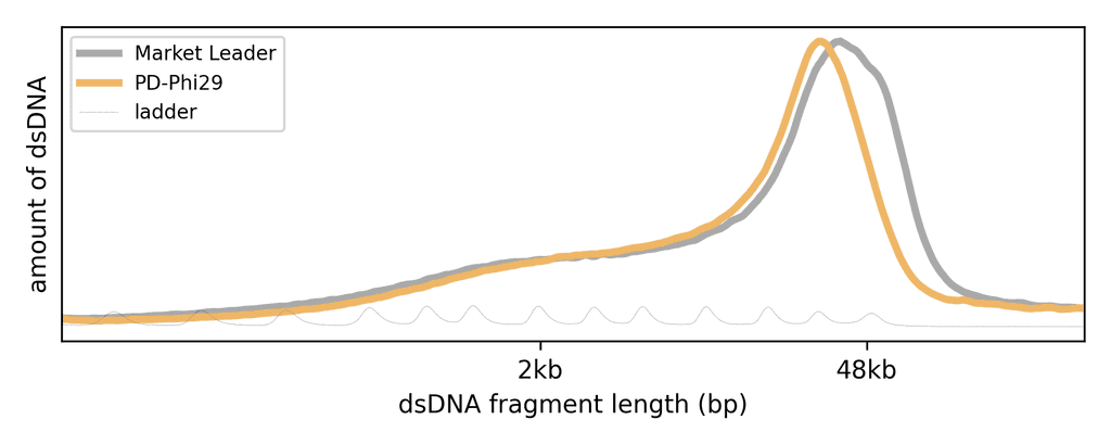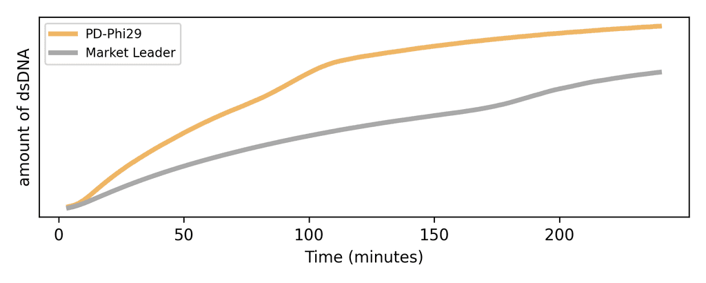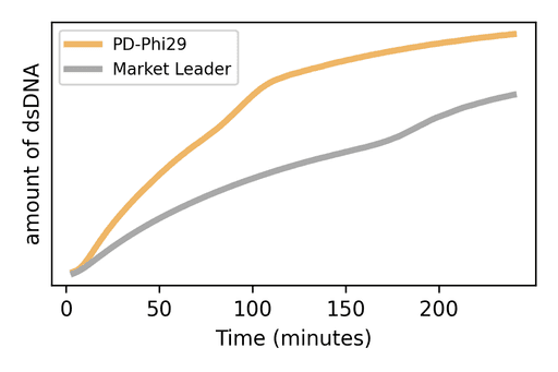 PD-Phi29 is active up to 42°C and creates more DNA faster than the market leader
